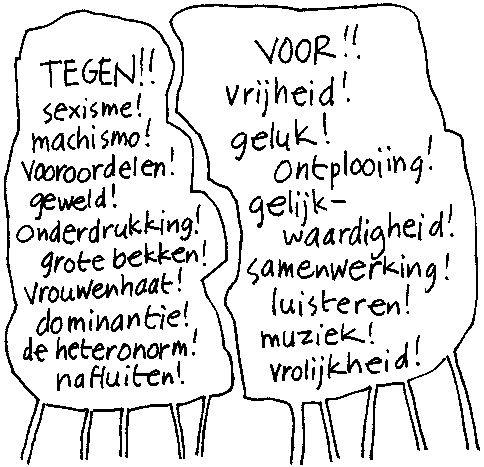 Feminisme is anti-macho. Dat is nog breder dan anti-onderdrukking. Het